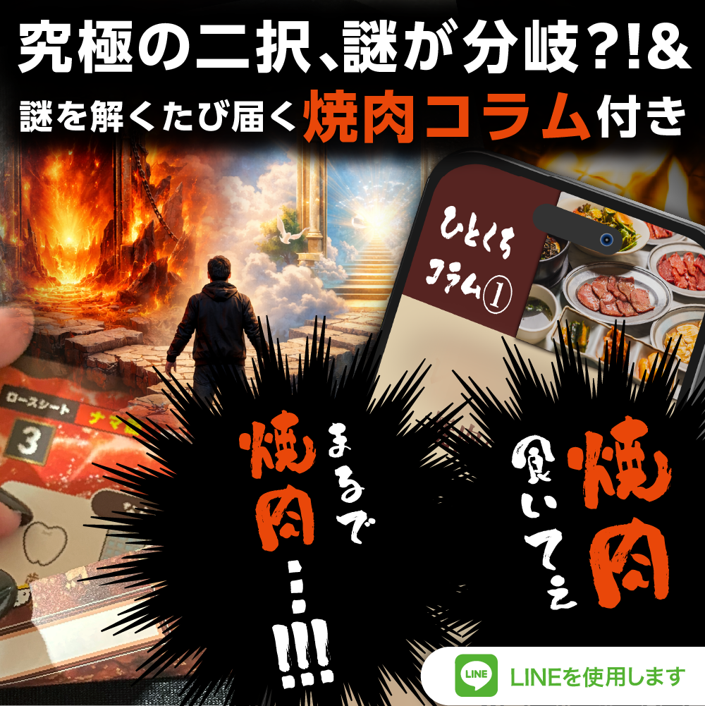 焼肉をテーマにした、LINEを使用する持ち帰り謎シリーズ。