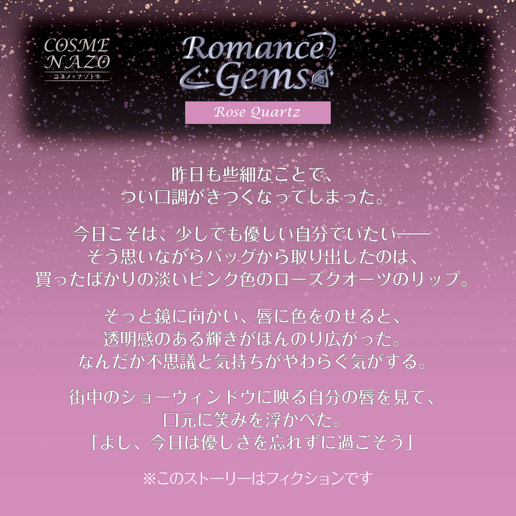 そう思いながらバッグから取り出したのは、買ったばかりの淡いピンク色のローズクオーツのリップ。